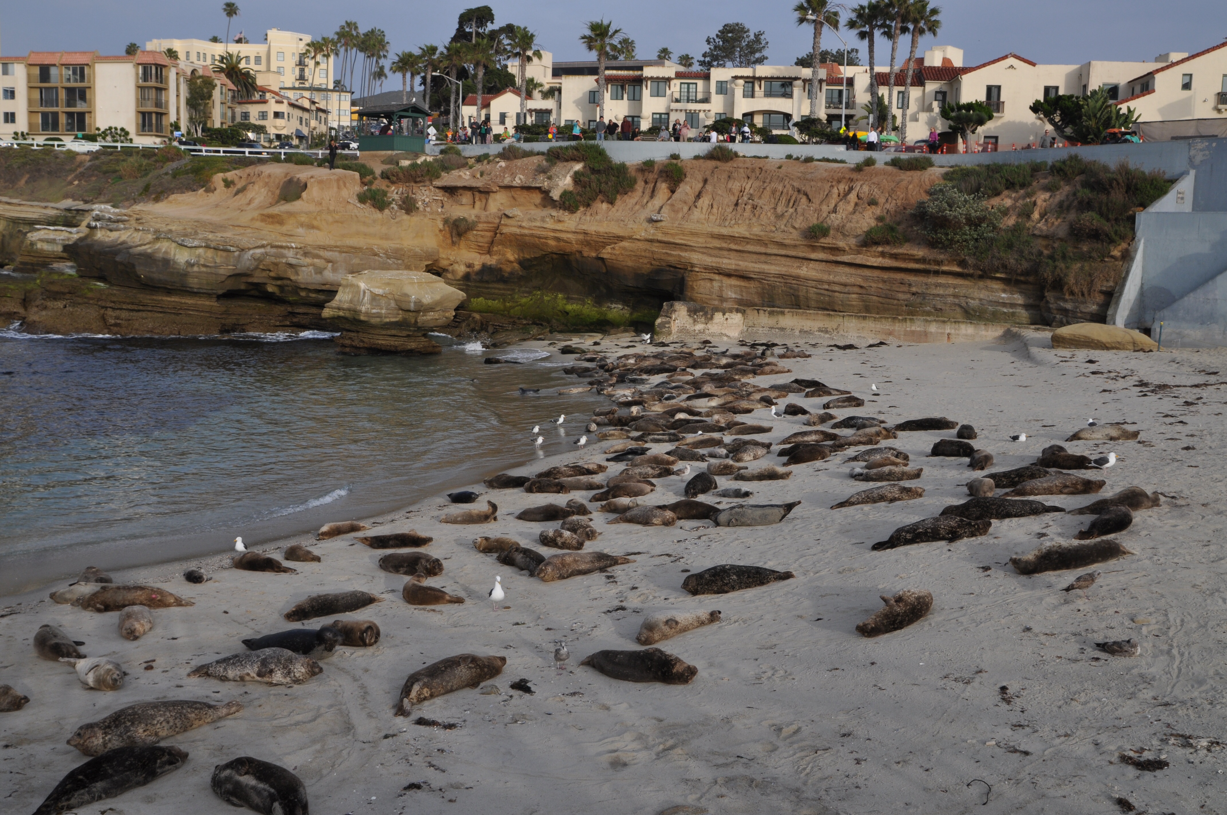 Der heutige Tag war für eine Stadterkundung geplant. Zuerst schauten wir uns den Flugzeugträger im Hafen von San Diego an. Danach fuhren wir über die große Brücke auf die Halbinsel Coronado und sammelten dort am Strand die ersten Sanddollars. Am Abend machten wir uns auf den Weg in den Stadtteil La Jolla. An der Küste lagen die Robben und ließen sich von den Touristen fotografieren. Der Hunger trieb uns am Abend in eine schöne Kneipe in der Nähe unseres Hotels.