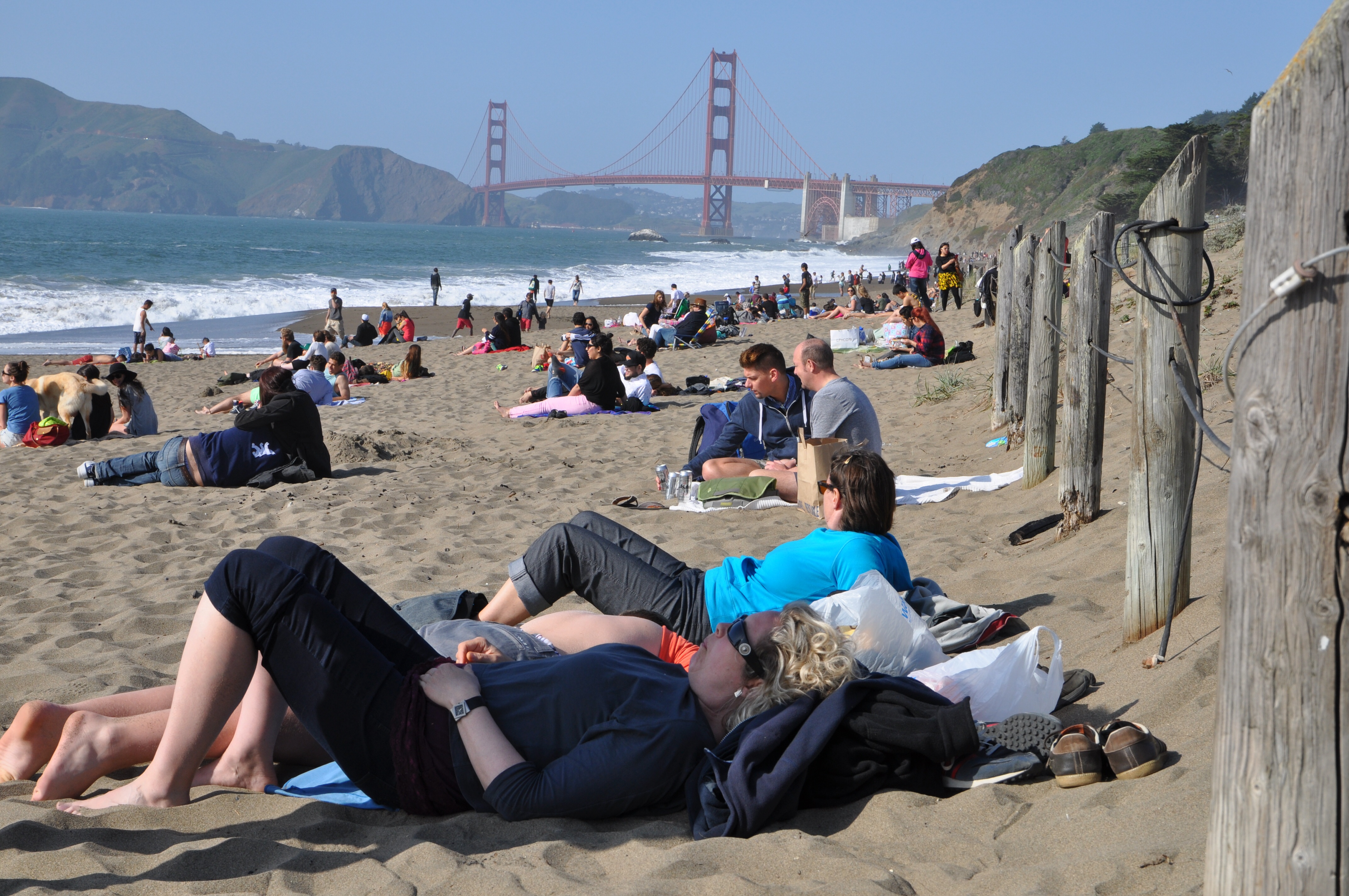 Bei bestem Wetter ging’s heute Richtung Hafen, um für Peter, Dorita und Till eine Überfahrt nach Alcatraz zu buchen. Leider waren bis Dienstag alle Überfahrten ausgebucht. Daraufhin haben wir uns entschieden, zur Golden-Gate-Brücke zu fahren. Falls das Wetter umschlägt, wollte wir uns die Sicht auf dieses Kunstwerk aus Stahl nicht entgehen lassen. Wir parkten dieses Mal auf der anderen Seite des Highways und hatten somit auf diesem kostenlosen Parkplatz mehr Zeit. Einen unbeschreiblichen Krach verursacht der auf sechs Spuren stattfindende Autoverkehr. Es war, wie vor drei Jahren auch schon, ein tolles Erlebnis dieses Bauwerk auf sich wirken zu lassen. Danach fuhren wir zum Pier 39. hier war zum Ostersonntag großer Trubel. Wir hatten auch den Eindruck, dass sich die Zahl der Seelöwen nochmals vergrößert hat. Jedenfalls reichten die vorhandenen Pontons nicht aus. So, dass es lustig war, zu beobachten, wie die Tiere um einen Platz auf diesen stritten. Nach einer Fahrt auf der beeindruckenden Lombard-Street versuchten wir, einen Parkplatz in der Nähe der Häuserzeile „Painted Ladies“ zu ergattern. Leider erfolglos. Bei einem Stopp in Chinatown konnte man den kam man sich vor, als wäre man tatsächlich in einer chinesischen Stadt. Danach ging es weiter zum Beach auf der Pazifikseite der Stadt. Auch hier war durch den Feiertag viel los. Alles in allem war die für mich schönste Stadt der Welt ein großartiges Erlebnis.