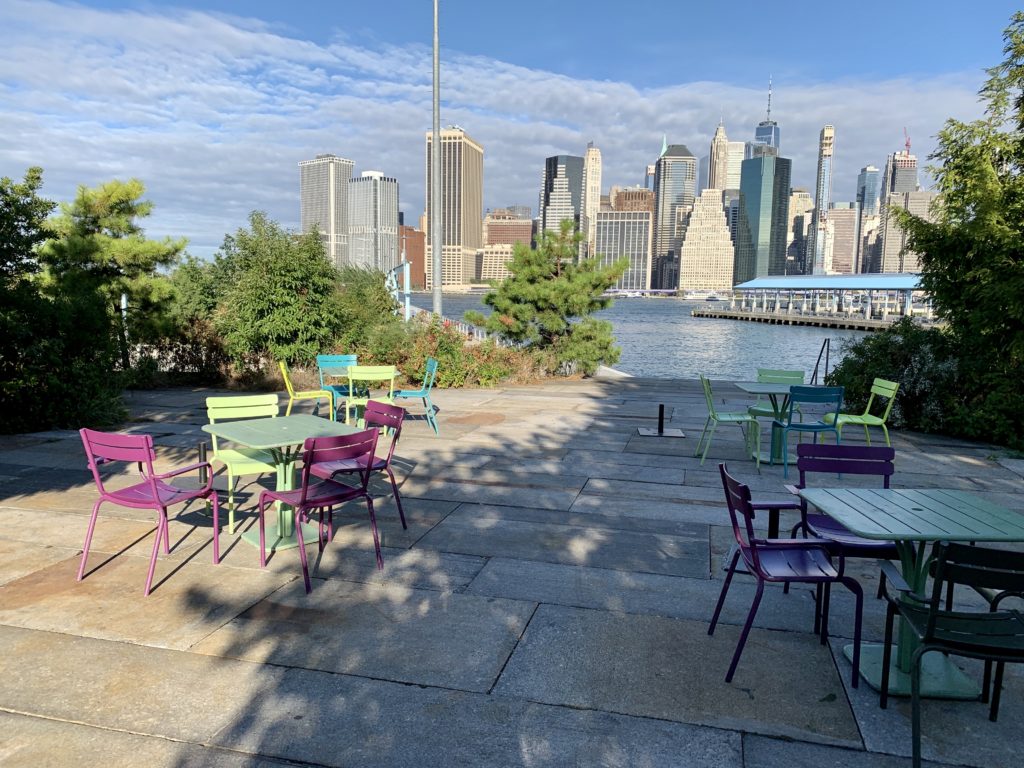 In Brooklyn angekommen, sind wir durch Old-Brooklyn nach Brooklyn-Heights gegangen. Schöne, alte Häuser und Gärten, teilweise mit Blick auf Manhattan. An der Wasserfront von Brooklyn wurde ein Park mit Grillmöglichkeiten angelegt, der zu der frühen Uhrzeit, bis auf einige Jogger, sehr leer war.