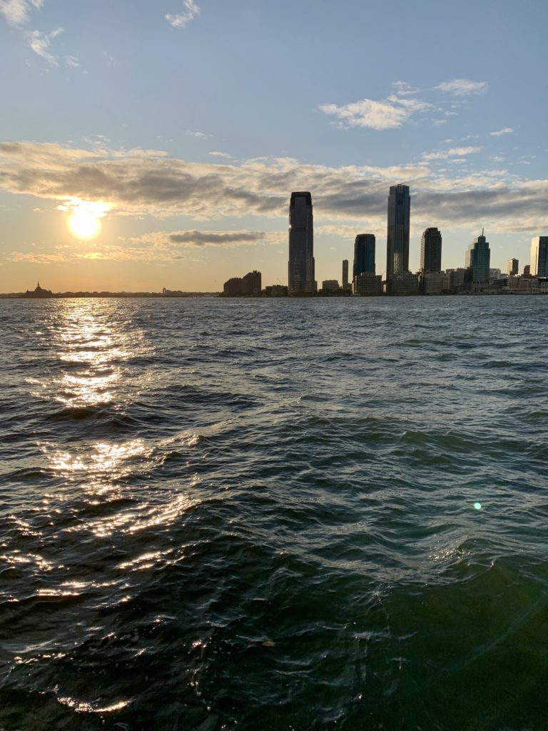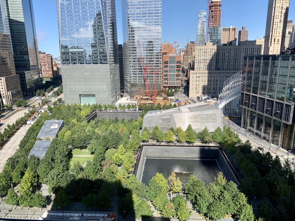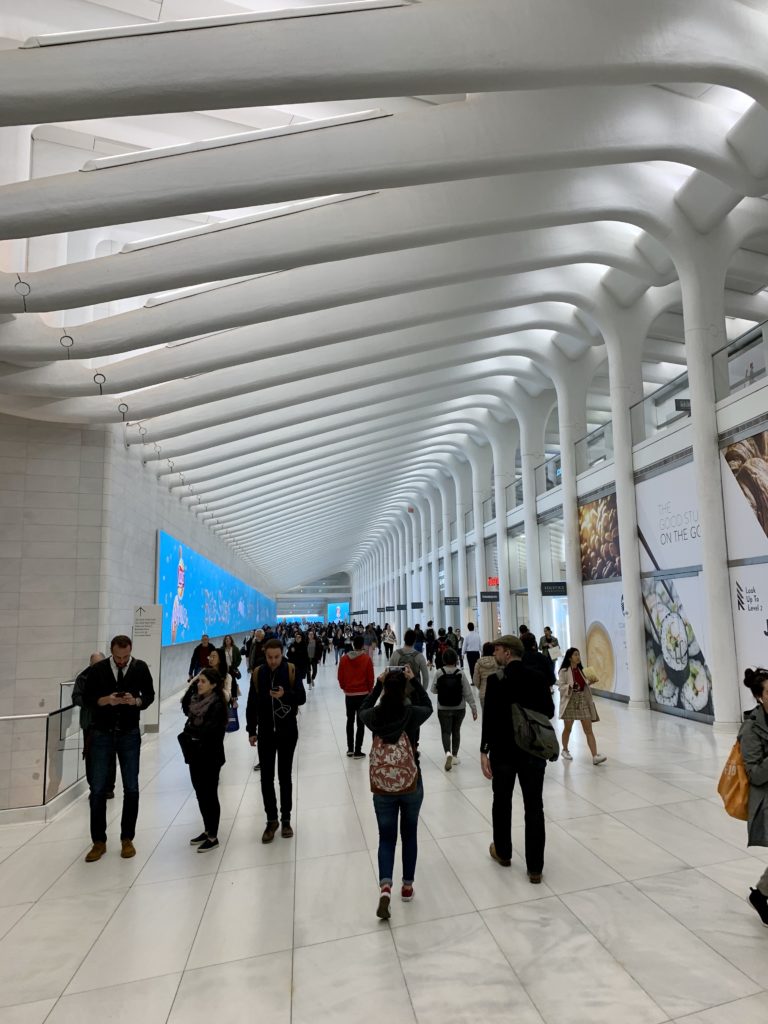 Nach einer Nachmittagsruhe im Hotel, hier haben wir vorher noch schnell ein Foto von der Aussicht von der Rooftop-Bar geschossen, sind wir dann noch zu einem Abendspaziergang vom Battery-Park weiter an der Westseite Manhattens bis zur Höhe unseres Hotels aufgebrochen. Nach einem Burger-Besuch im Brookfield-Place, konnten wir unterirdisch das architektonisch beeindruckende Oculus-Gebäude erreichen.