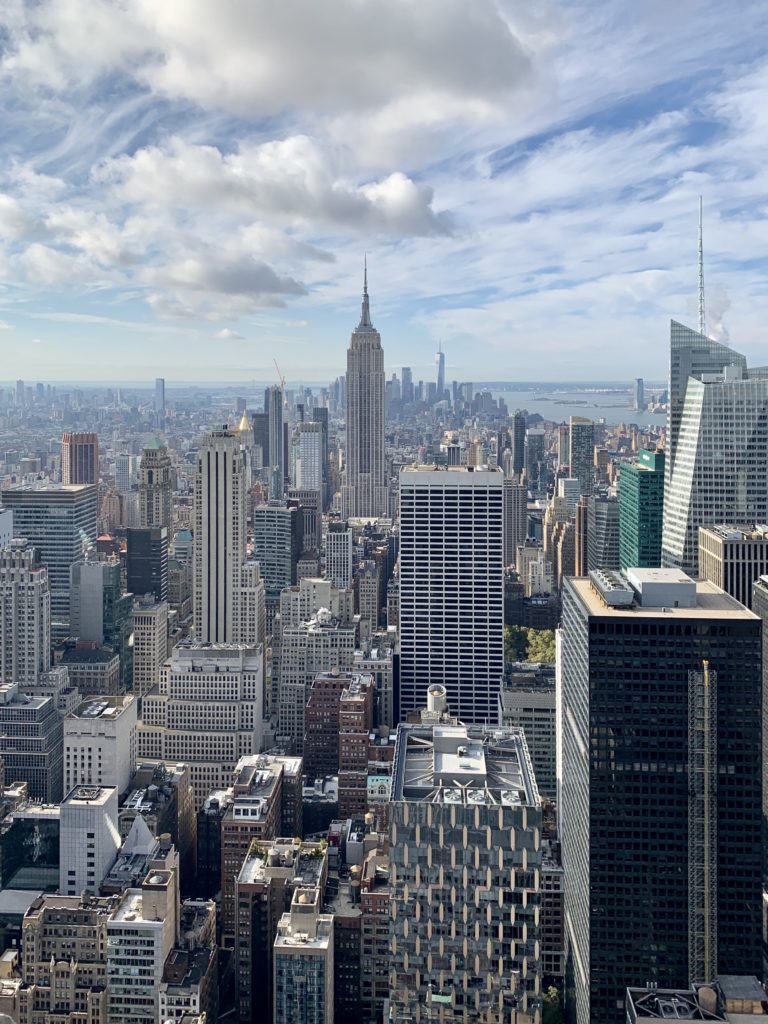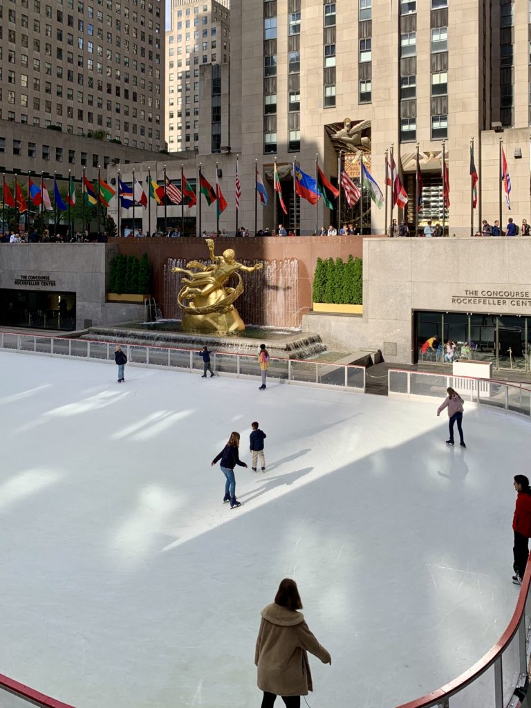 Birgit wollte heute die erste auf dem Rockefeller-Center sein. Die Dachterrassen öffnen um 8 Uhr. Hat nicht geklappt, aber schön leer war es trotzdem. Vom „Top of the Rock“ hat man einen hervorragenden Blick auf alle Stadtteile dieser außergewöhnlichen Metropole. Wieder unten angekommen haben wir dann noch einen Blick auf die gerade eröffnete Eissaison im Hof der Rockefeller-Centers werfen können.