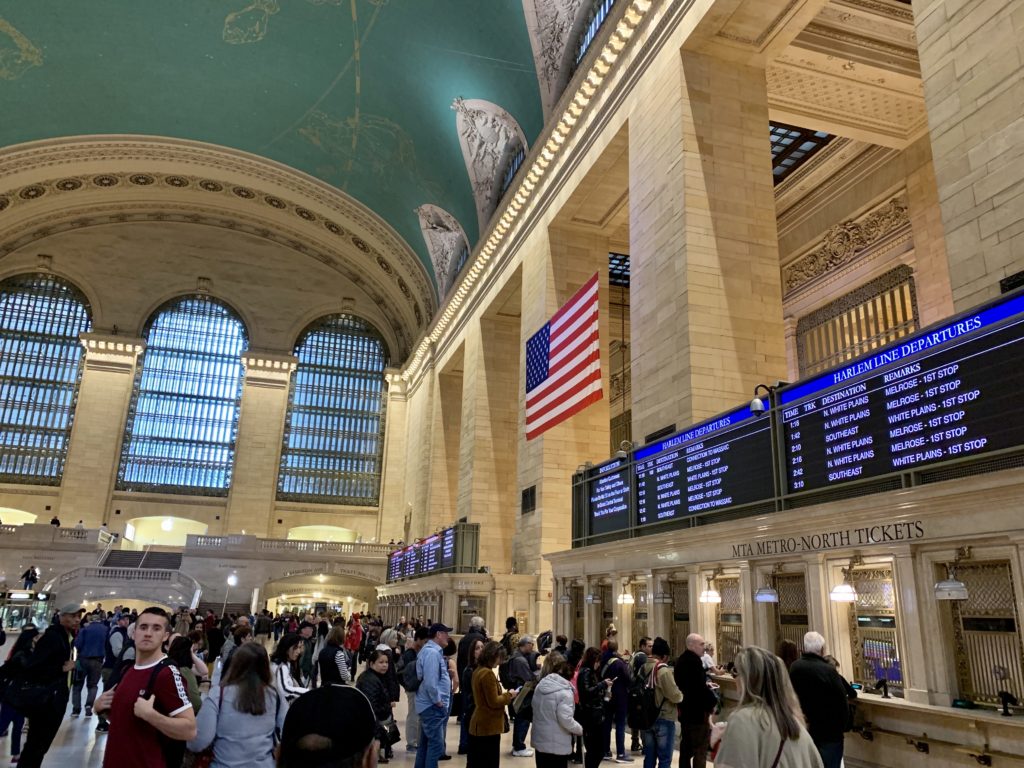 Von der Kirche aus wollte Birgit die Stelle anschauen, an der das berühmte Marylin Monroe Bild entstanden ist. Vermutlich wird aber an diesem Ort gerade an der Fassade des Gebäudes gearbeitet und die Stelle ist eingerüstet. Das nächste Ziel war die Grand Central Station, hier die sogenannte Whispering-Hall vor der Oyster-Bar. Der Bahnhof selbst ist schon sehr beeindruckend und das „Unterhalten„ von Ecke zu Ecke funktioniert auch.