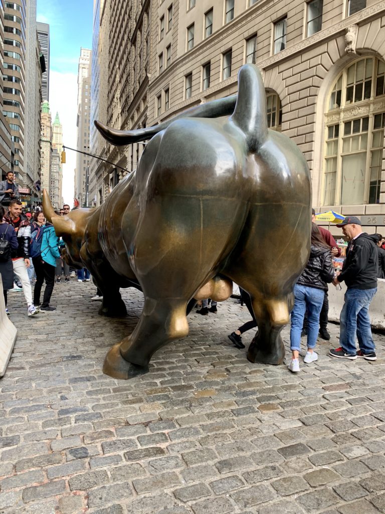 Am Bowling Green steht der Bulle der New Yorker Börse. Hier gibt es zwei Schlangen. Die einen warten darauf ein Foto vom Kopf machen zu können, dir anderen warten auf ein Foto von der anderen Seite.