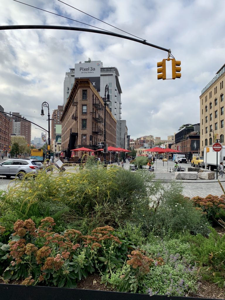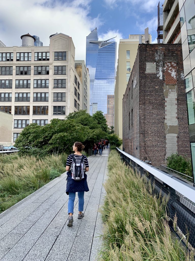 Anschließend sind wir auf die früher genutzte Bahntrasse, den heutigen Highline Park gestiegen. Diesen Park besuchten wir auch schon 2018. Es war eines der beeindruckendsten Erlebnisse für uns. Von der begrünten und geschmackvoll angelegten Trasse ergeben sich immer wieder spektakuläre Blicke auf die Stadt.