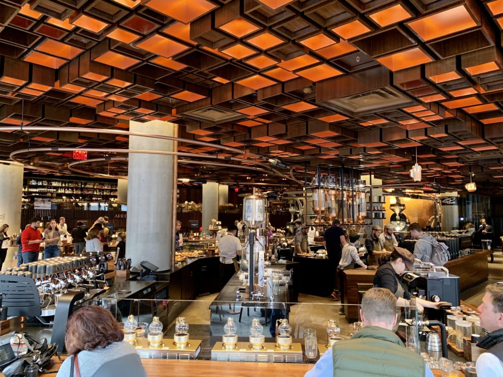 Heute stand als erstes ein Besuch des Meatpacking Districts auf dem Plan. Mit der Metro in Chelsea angekommen, entdeckten wir das aus alten Fabrikgebäuden bestehende Viertel. In einem ist im Erdgeschoss die Starbucks Roastery beheimatet. Ein beeindruckendes Geschäft, auf drei Ebenen. Gleich daneben liegt der Chelsea Market, ein Gebäude, das früher eine Keksfabrik war und jetzt mit Restaurants und Läden besiedelt ist. Hier wurde der bekannte Oreo Keks erstmals gebacken.